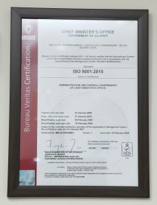રાજ્ય શાસનના સર્વોચ્ચ કેન્દ્ર એવા મુખ્યમંત્રી કાર્યાલયને જાહેર સેવાઓના ક્ષેત્રમાં ઉત્કૃષ્ટ અને સાતત્યપૂર્ણ સુધારાઓ સાથેના સમયબદ્ધ કાર્ય આયોજન માટે આ ISO ૯૦૦૧:૨૦૧૫ સર્ટિફિકેશન પ્રથમવાર ૨૦૦૯માં એનાયત થયું હતું.