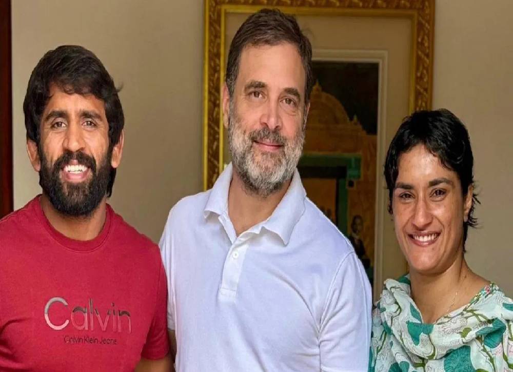હરિયાણામાં વિધાનસભા ચૂંટણી પહેલા કોંગ્રેસમાં જોડાવાની અફવાઓ વચ્ચે કુસ્તીબાજ વિનેશ ફોગાટ બુધવારે કોંગ્રેસ નેતા રાહુલ ગાંધીને મળ્યા હતા. ટોક્યો ઓલિમ્પિક બ્રોન્ઝ મેડલ વિજેતા બજરંગ પુનિયા પણ વિપક્ષના નેતાને મળ્યા હતા. કોંગ્રેસે મંગળવારે કહ્યું હતું કે તે કેન્દ્રીય ચૂંટણી સમિતિની બેઠક બાદ ફોગાટ અંગે સ્થિતિ સ્પષ્ટ કરશે.