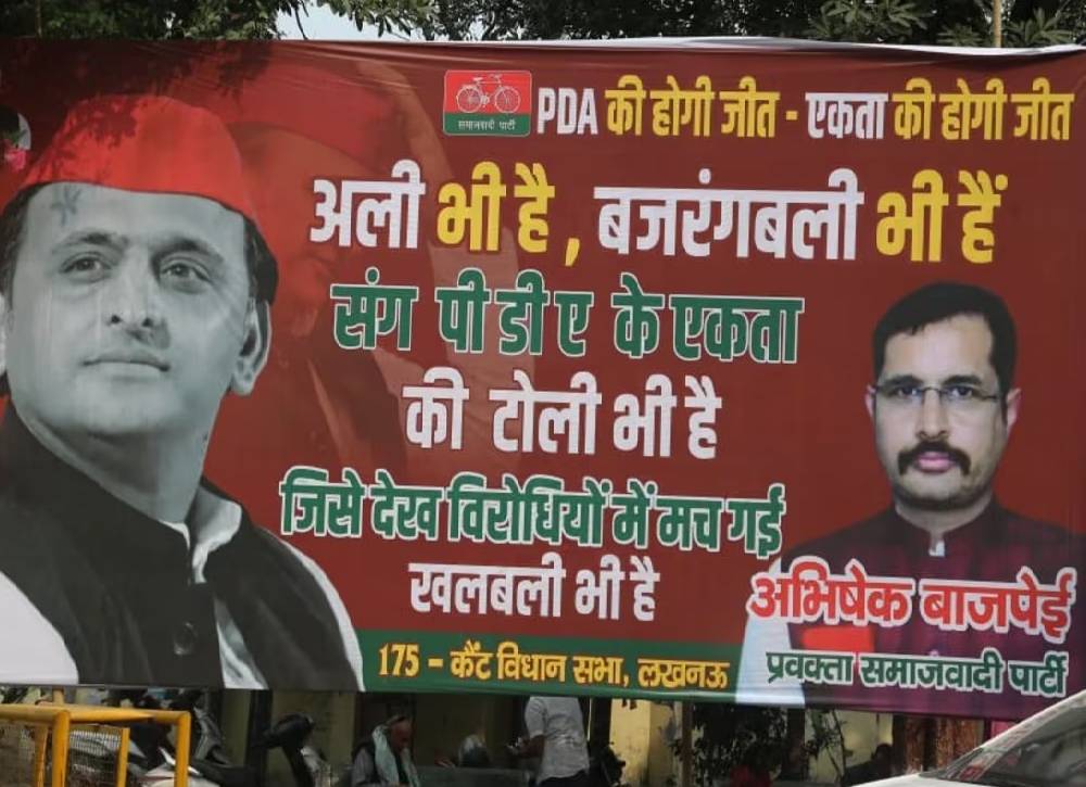 યુપી વિધાનસભાની નવ બેઠકો પર યોજાનારી પેટાચૂંટણી પહેલા યુપીના રાજકારણમાં સતત પોસ્ટર વોર ચાલી રહી છે. સપા અને બીજેપી બંને પોતપોતાના સૂત્રોના પોસ્ટર લગાવીને એકબીજા પર પ્રહારો કરી રહ્યા છે. SPએ હવે વધુ એક નવું પોસ્ટર લગાવ્યું છે. આ પોસ્ટર 175-કેન્ટ એસેમ્બલી પાસે લગાવવામાં આવ્યું હતું. આ પોસ્ટરમાં અલી અને બજરંગબલી બંનેનો ઉલ્લેખ છે. આ ઉપરાંત, પોસ્ટરમાં પીડીએ એકતાનું એક જૂથ પણ છે, જેને જોઈને વિરોધીઓમાં હલચલ મચી ગઈ છે. સપાના પ્રવક્તા અભિષેક બાજપાઈ દ્વારા લગાવવામાં આવેલા આ પોસ્ટરમાં લખવામાં આવ્યું છે કે, અલી પણ ત્યાં છે, બજરંગબલી પણ છે. પીડીએની એકતાનું જૂથ પણ છે. આ જોઈને વિરોધીઓમાં ગભરાટ ફેલાયો હતો.