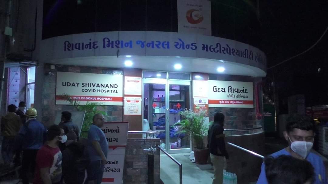 રાજકોટ ખાતે આવેલી ઉદય શિવાનંદ હોસ્પિટલમાં રાત્રિના 12.30 આસપાસ આગલાગવાની ઘટના ઘટી હતી .હોસ્પિટલના બીજા માળે મશીનરી માં શોટ સર્કિટના કારણે આગ લાગી હોવાનું પ્રાથમિક અનુમાન લગાવવામાં આવિ રહયું છે. આ ખાનગી હોસ્પિટલમાં કુલ કોરોનાના 33 દર્દી સારવાર લઈ રહ્યા હતા. લાગેલી આગ થી 5 લોકોના મૃત્યુ થયા છે