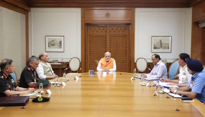 વડાપ્રધાન નરેન્દ્ર મોદીએ મંગળવારે દેશના ટોચના સંરક્ષણ અધિકારીઓ સાથે બેઠક યોજી હતી. જેમાં સંરક્ષણ પ્રધાન રાજનાથ સિંહ, રાષ્ટ્રીય સુરક્ષા સલાહકાર અજિત ડોભાલ અને ત્રણેય સશસ્ત્ર દળોના વડાઓ હાજર રહ્યા હતા. ચીફ ઓફ ડિફેન્સ સ્ટાફ (CDS) જનરલ અનિલ ચૌહાણ પણ આ બેઠકમાં હાજર રહ્યા હતા. આ બેઠક લગભગ દોઢ કલાક ચાલી. આ બેઠક એવા સમયે થઈ છે જ્યારે ભારત દક્ષિણ કાશ્મીરના પહેલગામમાં થયેલા આતંકવાદી હુમલા બાદ બદલો લેવાના વિકલ્પો પર વિચાર કરી રહ્યું છે. આ હુમલામાં 26 લોકો માર્યા ગયા હતા, જેમાંથી મોટાભાગના પ્રવાસીઓ હતા.