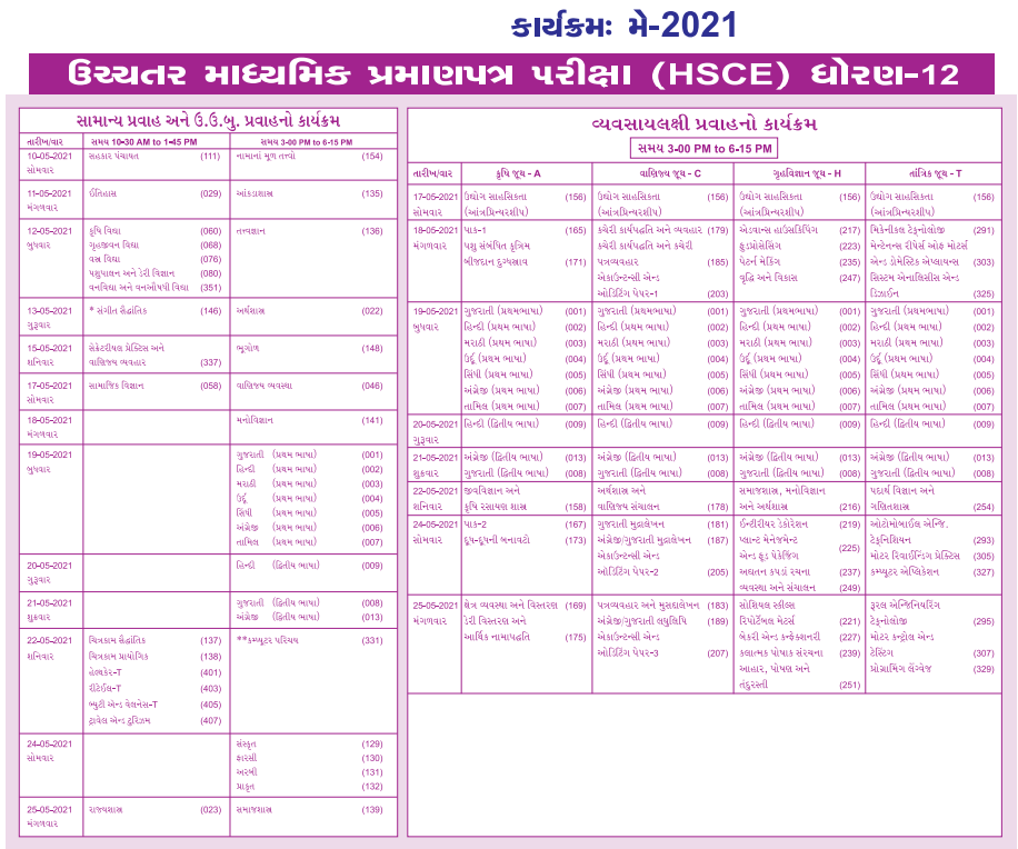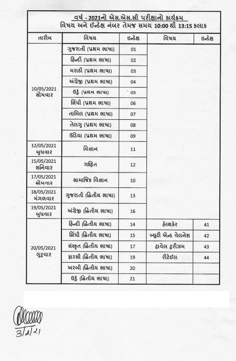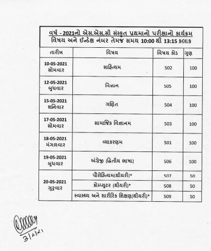 કોરોના મહામારીને કારણે ગત માર્ચ મહિનાના અંત થી જ અભ્યાસક્રમ બંધ હતો ત્યારે સરકાર દ્વારા 30 % જેટલો અભ્યાસ ક્રમ ઘટાડવામાં આવ્યો છે અને ગુજરાત માધ્યમિક અને ઉચ્ચતર માધ્યમિક શિક્ષણ બોર્ડની અખબારી યાદી જાહેર કરવામાં આવી છે જેમાં ધોરણ 10 અને 12 ની પરીક્ષા 10 મે થી 25 મે 2021 દરમ્યાન લેવામાં આવશે