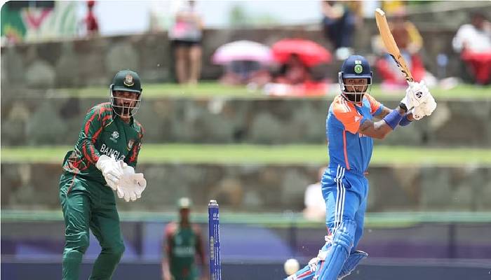 બાંગ્લાદેશ સામેની સુપર એઈટ તબક્કાની મેચમાં પ્રથમ બેટિંગ કરતા ભારતે 20 ઓવરમાં પાંચ વિકેટે 196 રન બનાવ્યા હતા. ભારત તરફથી વાઇસ કેપ્ટન હાર્દિક પંડ્યાએ શાનદાર બેટિંગ કરી હતી અને 27 બોલમાં અડધી સદી ફટકારી હતી. હાર્દિક 50 રન બનાવીને અણનમ પાછો ફર્યો હતો અને તેની ઇનિંગ્સના આધારે જ ભારત મજબૂત સ્કોર બનાવી શક્યું હતું. આ દરમિયાન, ભારતે ઇનિંગ્સમાં કુલ 13 છગ્ગા ફટકાર્યા અને T20 વર્લ્ડ કપની મેચમાં સૌથી વધુ છગ્ગા મારવાના તેના રેકોર્ડને પાછળ છોડી દીધો.
