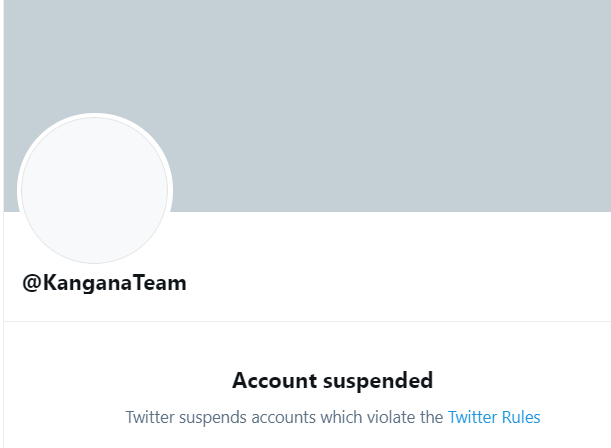હવે ટ્વિટર પરથી સંપૂર્ણ રીતે ગાયબ છે. જો તમે ટ્વિટર પર કંગનાને સર્ચ કરશો તો પણ તમને તેનું એકાઉન્ટ જોવા મળશે નહીં. ટ્વિટર તરફથી સ્પષ્ટતા કરાઈ છે કે કંગના રનૌતે ટ્વિટરના નિયમોનો ભંગ કર્યો છે.