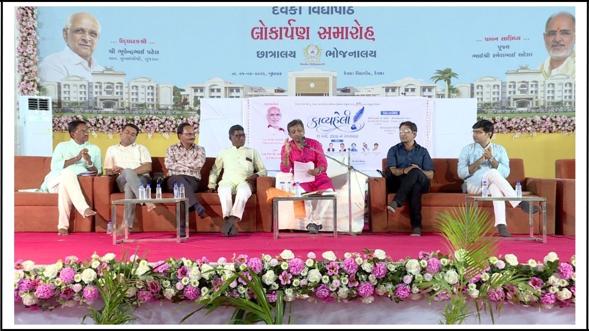 રાજુલા તાલુકા ના દેવકા ગામે દેવકા વિદ્યાપીઠ ના ગ્રાઉન્ડ મા વિશાળ સમીયાણા નીચે ઉભા કરાયેલા વિશાળ સ્ટેજ પર પ.પૂ. ભાઈ શ્રી રમેશભાઈ ઓઝા ની નિશ્રા મા ‘કાવ્યહેલી’ કવિ સંમેલન GTPL ગુજરાતી, સૌરભ સંસ્થાન રાજુલા તથા દેવકા વિધ્યાપીઠ ના સંયુક્ત ઉપક્રમે તા 31 માર્ચ ના સાંજે 5.00 થી 8.00યોજાયો હતો.