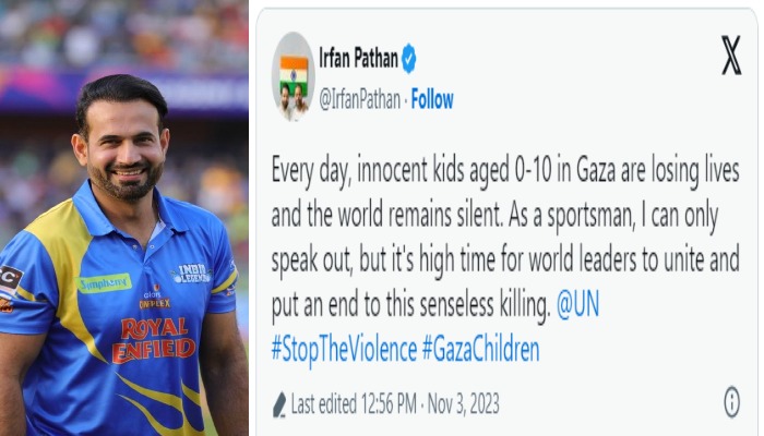દુનિયાભરમાં હાલ ઈઝરાઈલ અને ગાઝાની ચર્ચાઓ ચાલી રહી છે. બીજી તરફ સૌથી ખતરનાક યુદ્ધ ચાલી રહ્યું છે. હમાસ દ્વારા કરવામાં આવેલા હુમલા બાદ ઇઝરાયેલે આ આતંકવાદી સંગઠનનો સફાયો કરવા માટે એક અભિયાન શરૂ કર્યું છે અને દરેક સંભવિત રીતે ગાઝા પટ્ટી પર ભારે બોમ્બમારો કરી રહ્યું છે. હજારો લોકોએ આ યુદ્ધમાંજીવ ગુમાવ્યા છે. તેને રોકવા માટે વિશ્વભરમાંથી માંગ ઉઠી રહી છે. આ અંગે દુનિયાભરના સ્પોર્ટ્સ જગતમાંથી પણ અવાજ ઉઠાવવામાં આવી રહ્યો છે. હવે પૂર્વ ભારતીય ક્રિકેટર ઈરફાન પઠાણે પણ માસૂમ પેલેસ્ટાઈન બાળકોની હત્યા સામે અવાજ ઉઠાવ્યો છે.