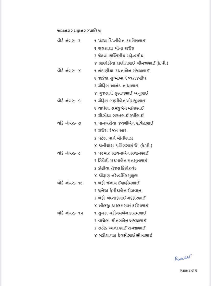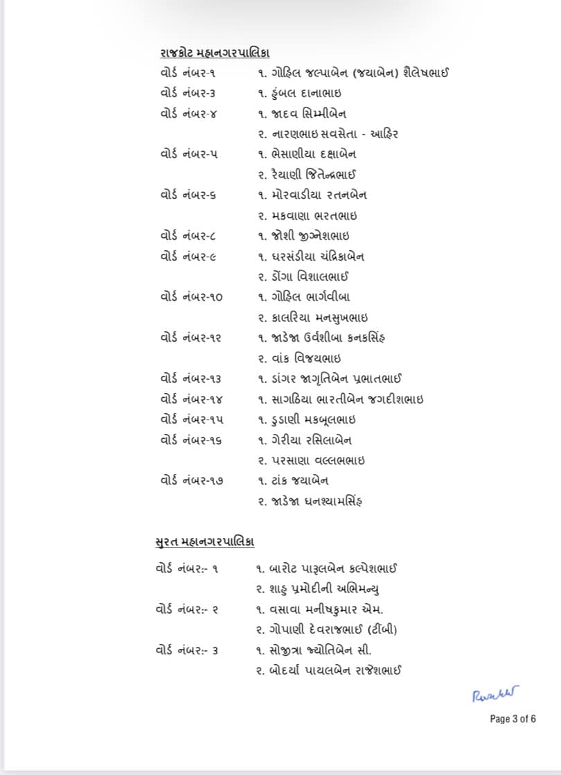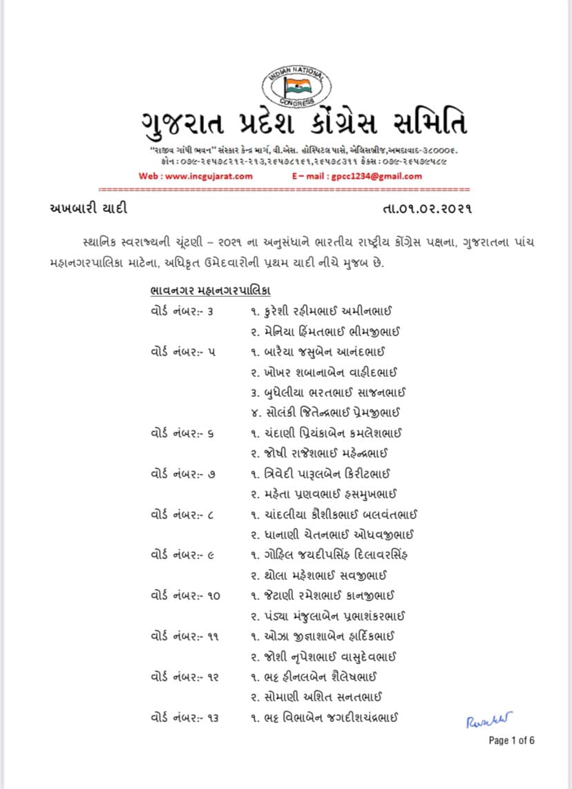 સ્થાનિક સ્વરાજની ચૂંટણીના ઉમેદવારી ફોર્મ ભરાઈ રહ્યા છે ત્યારે આજે કોંગ્રેસ દ્વારા વિવિધ ઉમેદવારો ની યાદી જાહેર કરવામાં આવી છે જેમાં ભાવનગર મહાનગરપાલિકા , જામનગર મહાનગરપાલિકા ,રાજકોટ મહાનગરપાલિકા , સુરત મહાનગરપાલિકા ,વડોદરા મહાનગરપાલિકા ના ઉમેદવારો ના નામ સત્તાવાર જાહેર કરવામાં આવ્યા છે તથા અમદાવાદ મહાનગરપાલિકા ની યાદી હજુ જાહેર કરવામાં આવી નથી જ્યારે આજે ભાજપ ની પાર્લામેંટરી બોર્ડ ની બેઠક મળી હતી જેમાં ઉમેદવારીની પસંદીને લઈ નિર્ણય લોવમાં આવ્યા હતા