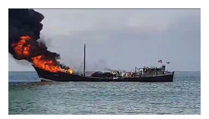 ખાંડ અને ચોખા ભરેલા જહાજને આગ લાગવાથી ભારે નુકસાન થયું છે. આગ એટલી ભીષણ હતી કે ધુમાડો દૂર દૂર સુધી ફેલાઈ ગયો. આગ કેવી રીતે અને શા માટે લાગી? હજુ સુધી ખુલાસો થયો નથી.