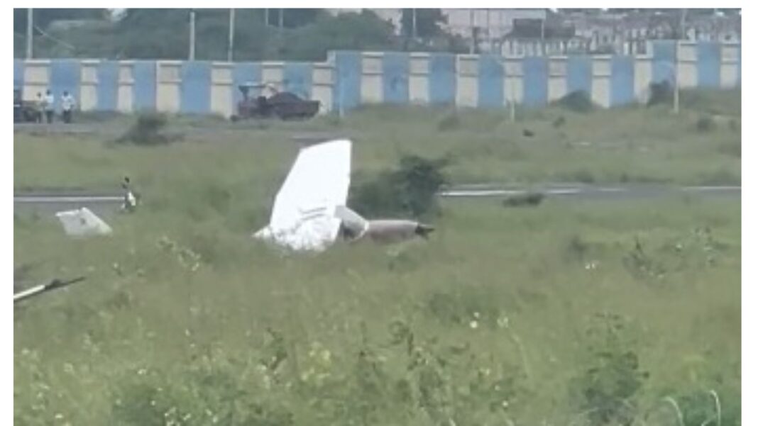 પ્રાથમિક માહિતી મુજબ, આ ઘટના બપોરના સમયે બની હતી. પાયલોટ ટ્રેનિંગ સેન્ટરનું આ મીની પ્લેન રનવે પર લેન્ડિંગ કરી રહ્યું હતું. જોકે, લેન્ડિંગની પ્રક્રિયા દરમિયાન કોઈક કારણોસર એરક્રાફ્ટ રનવે પર સીધું રહેવાના બદલે તેની નીચેની સાઈડમાં ત્રાંસુ થઈને સરકી ગયું હતું.