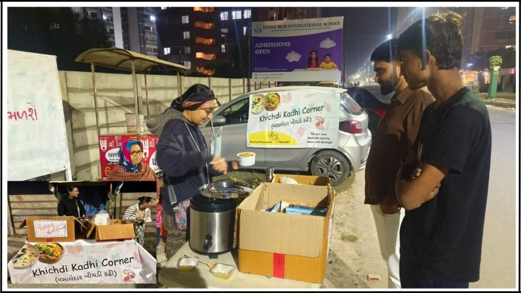 આજની ફાસ્ટ ફોરવર્ડિંગ લાઈફમાં ફૂડ પણ ફાસ્ટ બની ગયું છે… સાદા સાત્વિક ભોજનનું સ્થાન હવે ફાસ્ટ ફૂડ અને જંક ફૂડ લઈ રહ્યું છે આ દરમિયાન અમદાવાદના ત્રાગડ વિસ્તારમાં શરૂ થયું છે એક કઢી ખિચડી કોર્નર… જ્યાં સાત્વિક કઢી ખિચડી સાથે થાય છે વિચારોની વહેચણી, જી. હા… વિચારો ની વહેચણી એટલા માટે કે અહી વાંચવા માટે બૂક પણ મળી રહે છે.