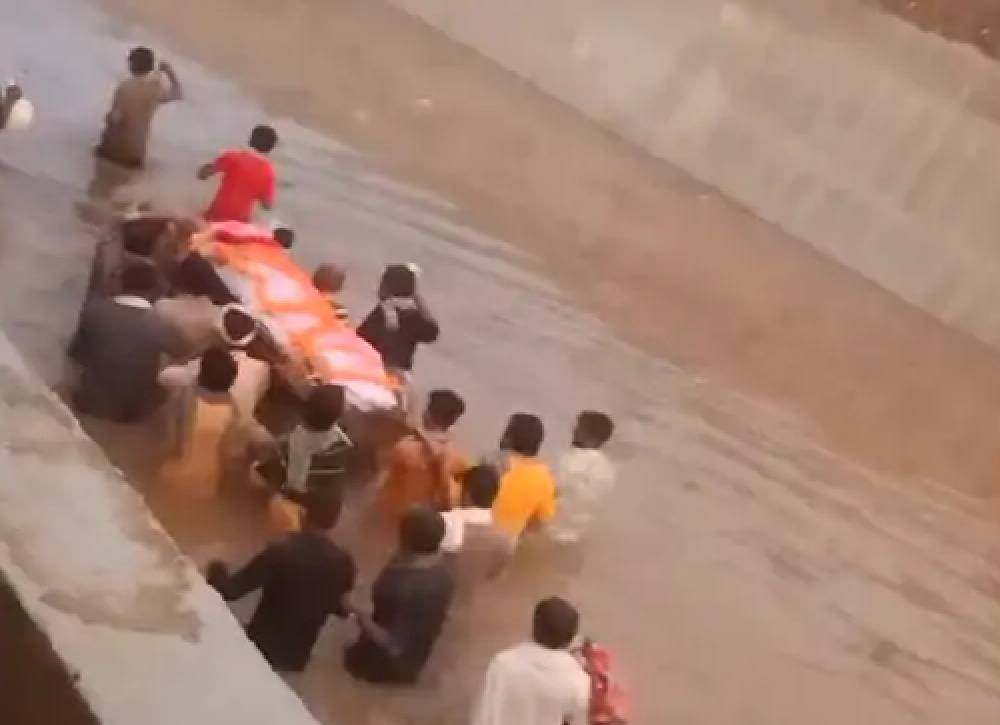 રાજ્યમાં વરસાદી માહોલ જામ્યો છે. આ દરમિયાન ભારે વરસાદને પગલે તંત્રની કામગીરીની પોલ ખૂલી છે. આ દરમિયાન કડીના સુજાતપુરા રોડ ઉપર રેલવે વિભાગ દ્વારા અંડરબ્રિજ બનાવવામાં આવેલો છે. જેમાં થોડા જ વરસાદમાં પાણી ભરાયું છે અને ચોમાસામાં આ બ્રિજ માથાનો દુખાવો સમાન થઈ ગયો છે. બ્રિજની બાજુમાં આવેલી મિલની ચાલીમાં એક વૃદ્ધનું અવસાન થતાં આજુબાજુ રસ્તો ન હોવાથી પરિવારજનોને મૃતદેહ (પાલખી)ને અંડરબ્રિજના પાણીમાં થઈને સ્મશાને લઈ જવાની ફરજ પડી હતી.